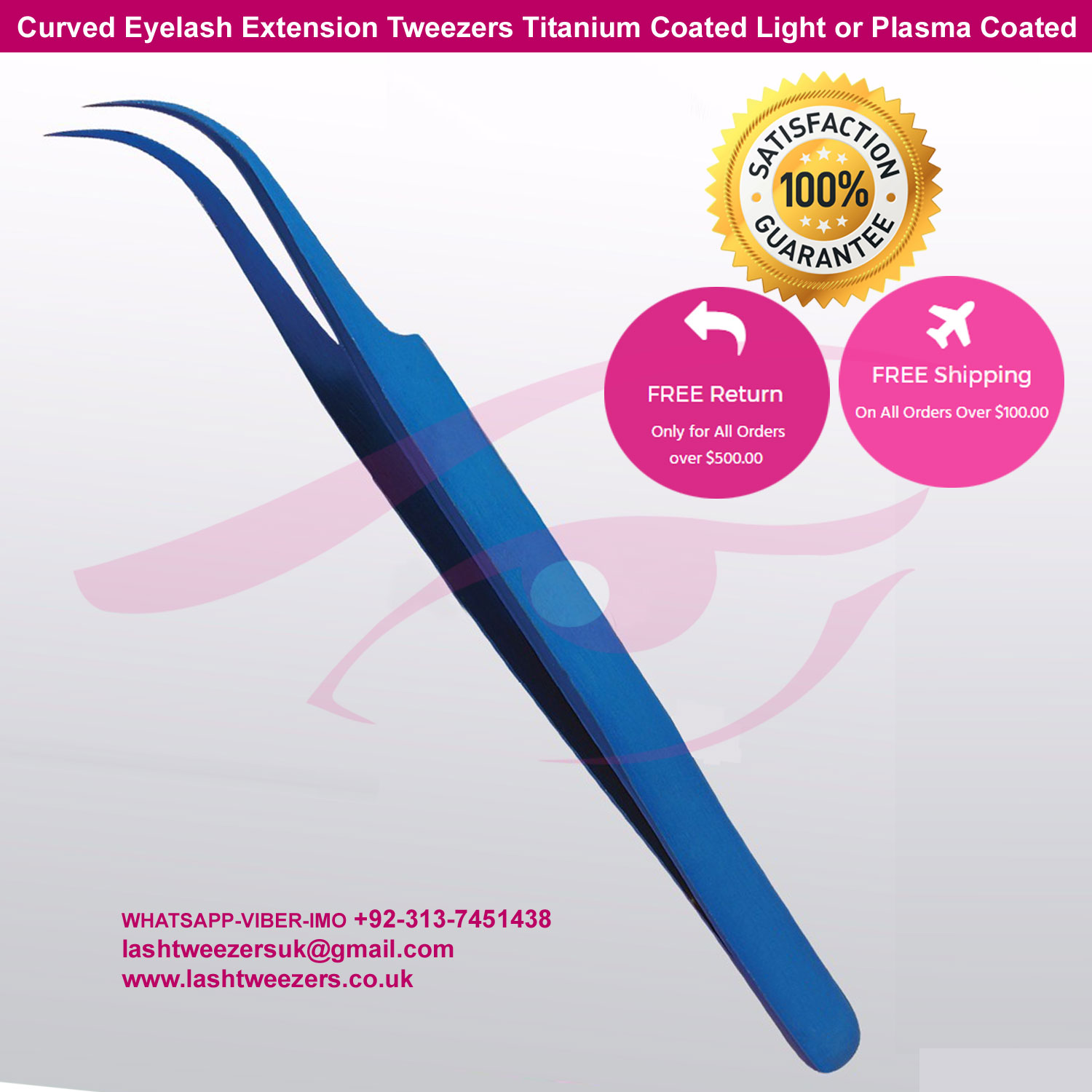 Package Content : 1 x Curved Titanium Eyelash Tweezers