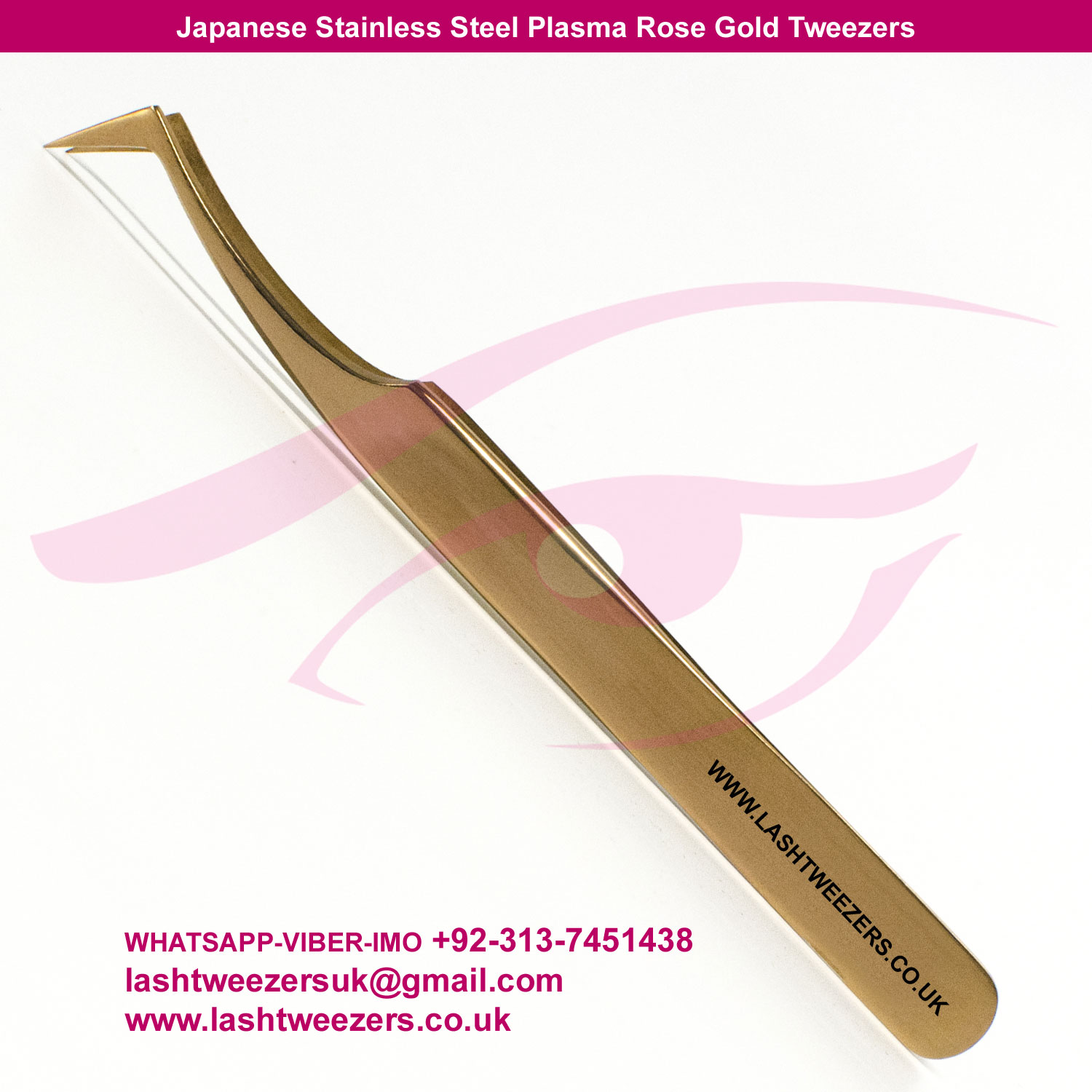 Japanese Stainless Steel Plasma Rose Gold Volume Lash Tweezers